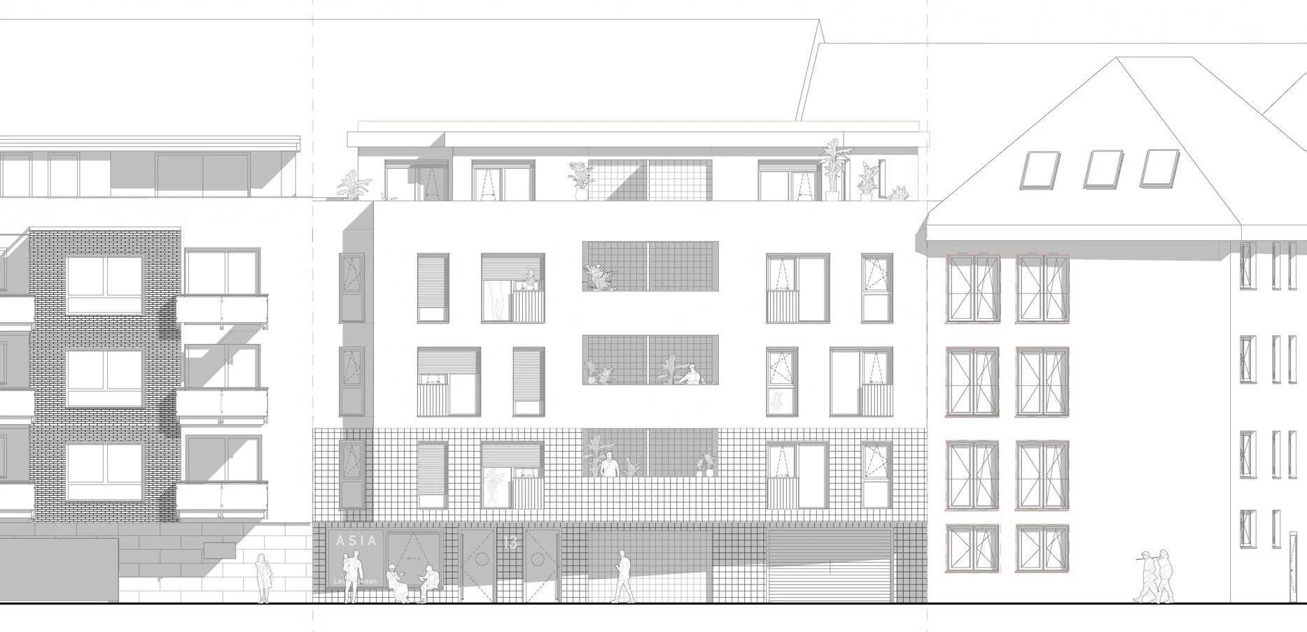 8 Wohneinheiten mit einer Gewerbefläche als Verlängerung des städtischen Raumes
